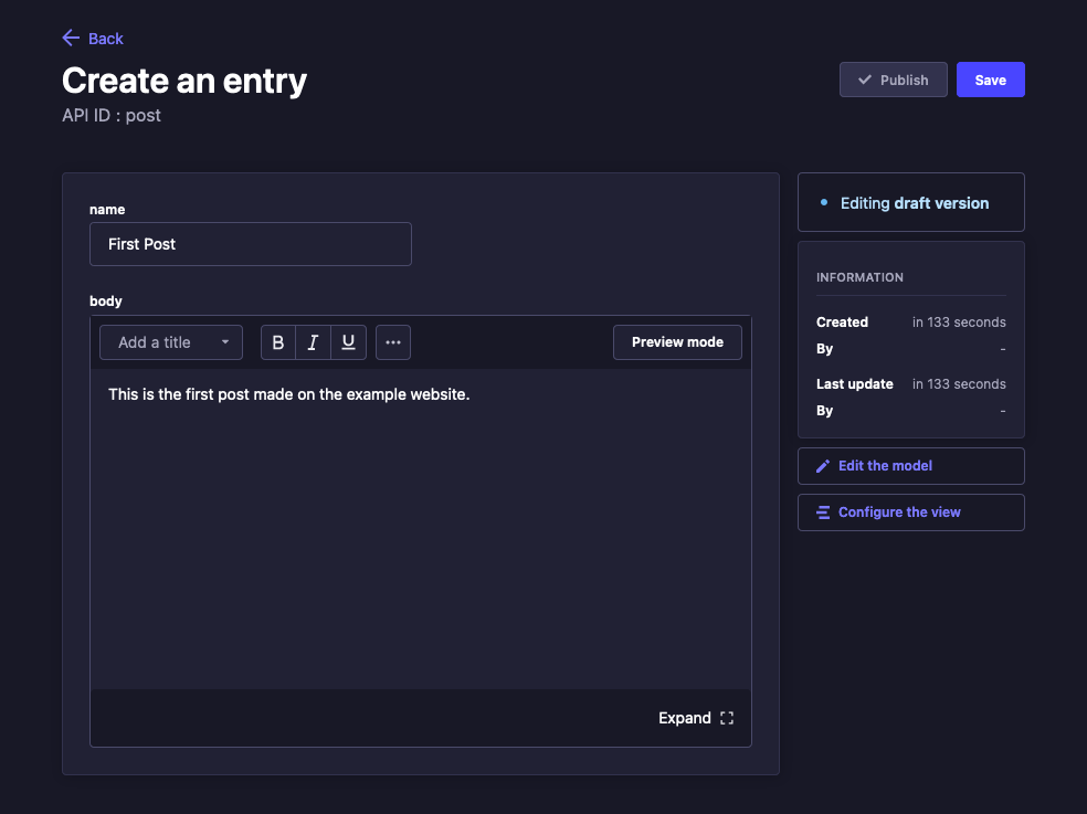 With that you have everything in place to start leveraging Strapi for your CMS needs. The example application above covers one popular modern framework for rendering content. But there are many more, and Strapi’s flexibility makes it an exceptional match for any of them.